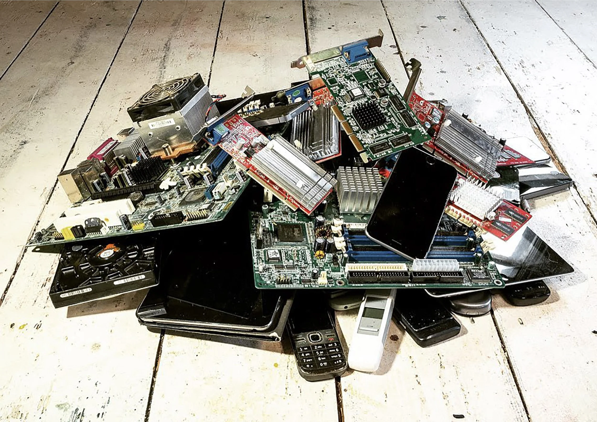 This story describes my experience of recovering precious metals recovered from electronic waste. In particular it illuminates the journey of recovering precious metals, from collecting waste to exchanging it for some gold and purifying the sample so it can be worked into new contemporary jewellery. The story starts in 2021 in Killeagh as part of an artist residency at Greywood Arts where I invited members of the community to donate their unwanted electronics. This stash was then traded for a small gold coil from KMK Metal recyclers in Tullamore in Ireland. The coil was subsequently worked, purified and then worked again to create thin gold foil for use in contemporary jewellery.